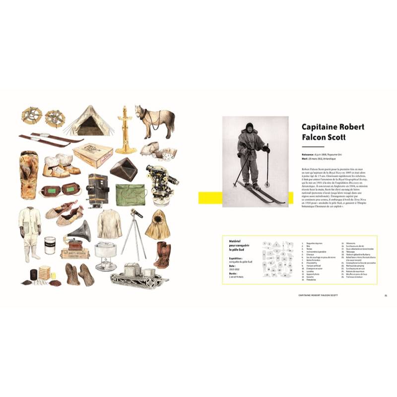 Grâce à des photographies soigneusement sélectionnées et à des illustrations spécialement commandées, nous pouvons voir en un coup d'oeil l'échelle, le style et la complexité des objets emportés dans l'inconnu par ces remarquables explorateurs, ainsi que l'impact de chaque choix sur leur voyage.