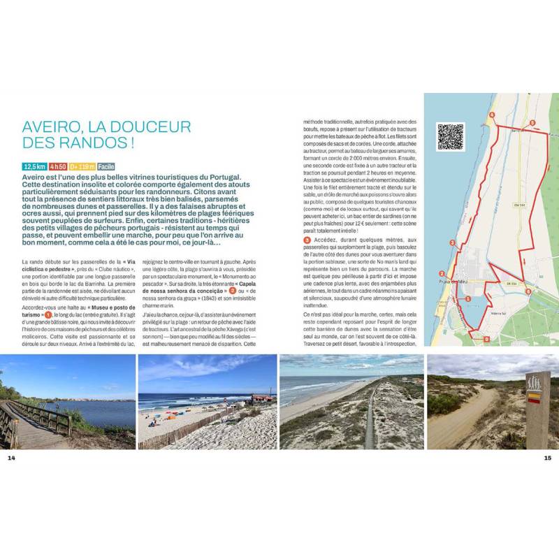 50 randonnées au Portugal, entre continent et Madère. Pour chacune, la carte du circuit, un QR Code renvoyant au site Wikiloc pour une orientation encore plus précise depuis son portable, un descriptif détaillé avec les points d'intérêt et une rubrique « À visiter autour, avant ou après ».
