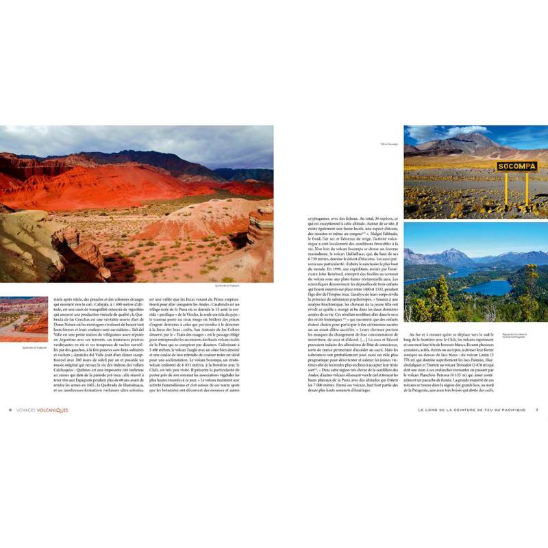 Dans cet ouvrage, les images et les textes agrémentés de quelques récits d'aventures personnels donnent un aperçu de tous les pays traversés par cette ceinture du feu en rendant compte de la beauté des paysages, ainsi que de la majesté et de la puissance des volcans qui les ont façonnés.