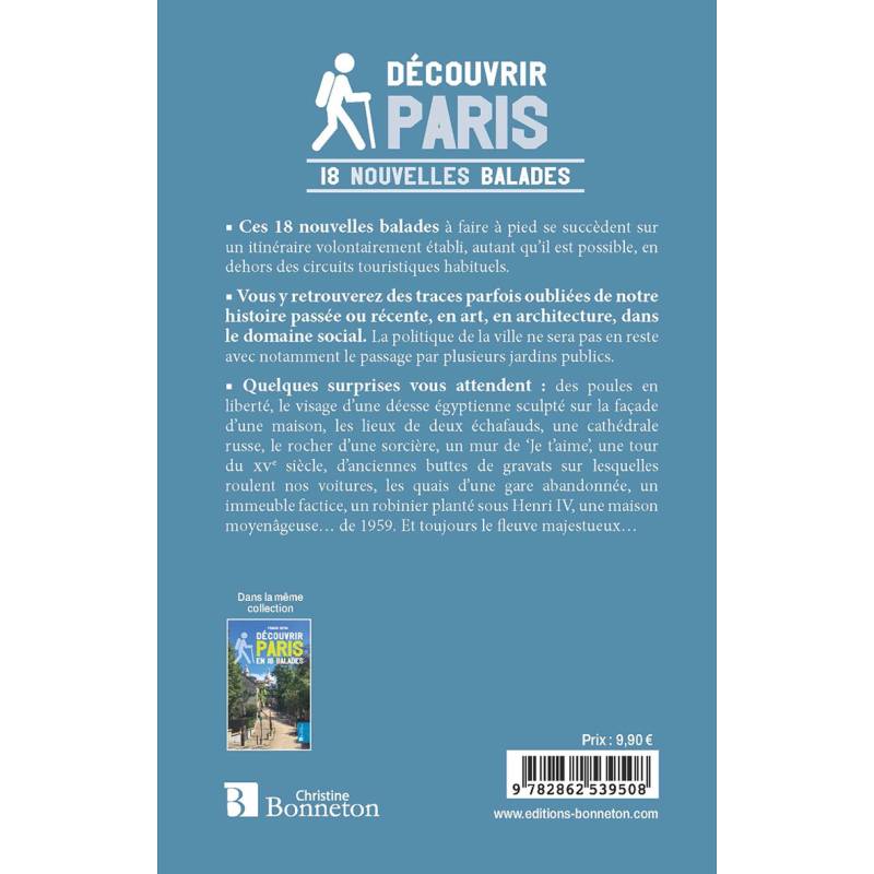 Ces 18 nouvelles balades à faire à pied se succèdent sur un itinéraire volontairement établi, autant qu'il est possible, en dehors des circuits touristiques habituels.Vous y retrouverez des traces parfois oubliées de notre histoire passée ou récente, en art, en architecture, dans le domaine social. La politique de la ville ne sera pas en reste avec notamment le passage par plusieurs jardins publics. Quelques surprises vous attendent : des poules en liberté, le visage d'une déesse égyptienne sculpté sur la façade d'une maison, les lieux de deux échafauds, une cathédrale russe, le rocher d'une sorcière, un mur de Je t'aime', une tour du xve siècle, d'anciennes buttes de gravats sur lesquelles roulent nos voitures, les quais d'une gare abandonnée, un immeuble factice, un robinier planté sous Henri IV, une maison moyenâgeuse de 1959. Et toujours le fleuve majestueux