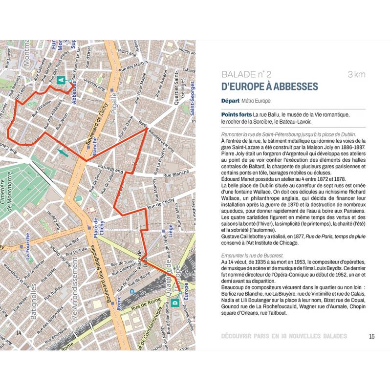 Pour chaque balade, un plan facile à lire, la distance à parcourir, le métro de départ et d'arrivée, les points forts (lieux incontournables).