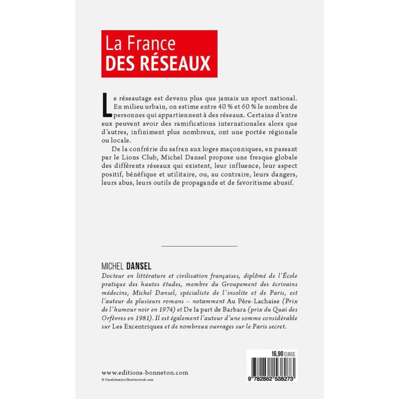 on estime entre 40 : et 60 : le nombre de personnes qui appartiennent à des réseaux. Certains de ces réseaux peuvent avoir des ramifications internationales alors que d'autres, infiniment plus nombreux, ont une portée régionale ou locale. De la confrérie du safran aux loges maçonniques, en passant par le Lions Club, Michel Dansel propose une fresque globale des différents réseaux qui existent, leur influence, leur aspect positif, bénéfique et utilitaire, ou au contraire leurs dangers, leurs abus, leurs outils de propagande et de favoritisme abusifs.