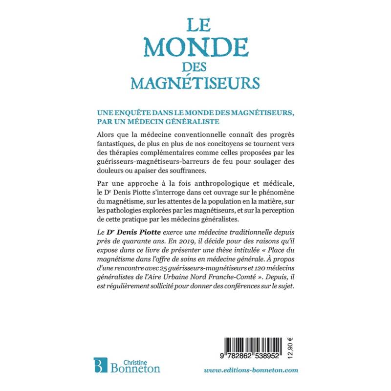 Par une approche à la fois anthropologique et médicale, le Dr Denis Piotte s'interroge dans cet ouvrage sur le phénomène du magnétisme, sur les attentes de la population en la matière, sur les pathologies explorées par les magnétiseurs, et sur la perception de cet aspect du soin par les médecins généralistes. Il se base notamment sur une enquête menée auprès de 25 magnétiseurs et 120 médecins généralistes de l'Aire Urbaine Nord Franche-Comté.
