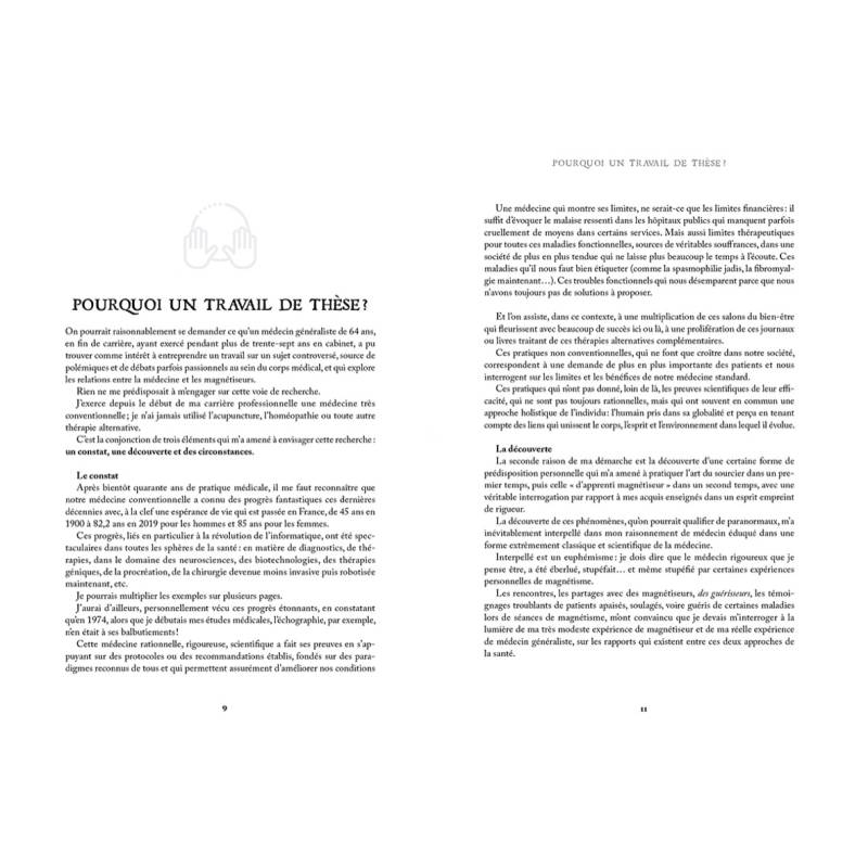 Après bientôt 40 ans à exercer une médecine très conventionnelle en cabinet, le Dr Denis Piotte décide pour des raisons qu'il expose dans son ouvrage d'entreprendre une thèse de doctorat en médecine intitulée « Place du magnétisme dans l'offre de soins en médecine générale, à propos d'une rencontre avec 25 guérisseurs-magnétiseurs et 120 médecins généralistes de l'Aire Urbaine Nord Franche-Comté ». Ce travail de recherche est à la base du présent livre.
