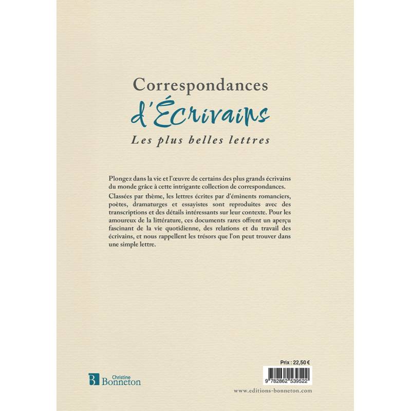 Plongez dans la vie et l'oeuvre de certains des plus grands écrivains du monde grâce à cette intrigante collection de correspondances. Classées par thèmes, les lettres écrites par d'minents romanciers, poètes, dramaturges et essayistes sont reproduites avec des transcriptions et des détails intéressants sur leur contexte. Pour les amoureux de la littérature, ces documents rares offrent un aperçu fascinant de la vie quotidienne, des relations et du travail des écrivains, et nous rappellent les trésors que l'on peut trouver dans une simple lettre.