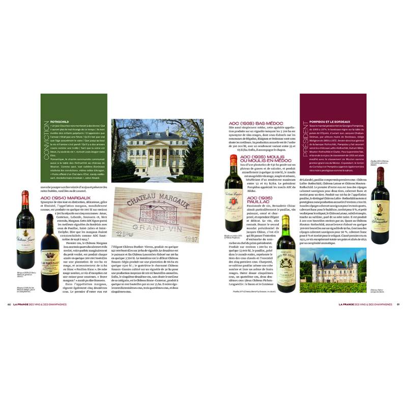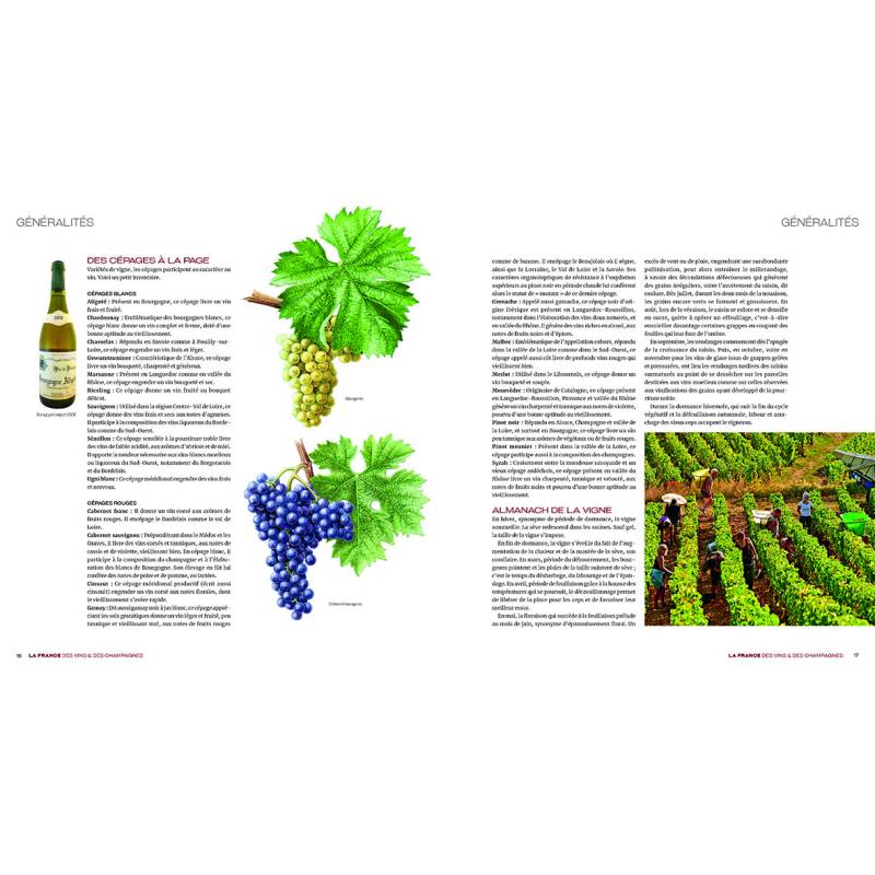 Après quelques généralités notamment sur les origines du vin, les différents cépages ou encore les règles de dégustation, le coeur de cet ouvrage propose une Carte des Vins et des Champagnes : quelques centaines de vins et champagnes français, répartis par régions viticoles ou anciennes provinces, sont présentés, et ce suivant un ordre alphabétique de ces entités géographiques en question. Précisément, environ 500 variétés de vins et champagnes parmi les 1200 répertoriées en France.