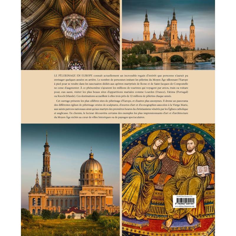 Cet ouvrage présente les plus célèbres sites de pèlerinage d'Europe, et d'autres plus anonymes. Il dresse un panorama des différentes églises de pèlerinage ornées de sculptures, d'uvres d'art et d'iconographies associées à la Vierge Marie, aux saints patrons nationaux ainsi qu'aux martyrs des premières heures du christianisme vénérés par les Églises catholique et anglicane. Votre voyage sera jalonné par les plus belles uvres d'art et d'architecture du Moyen Âge nichées au cur de villes historiques ou de paysages spectaculaires.
